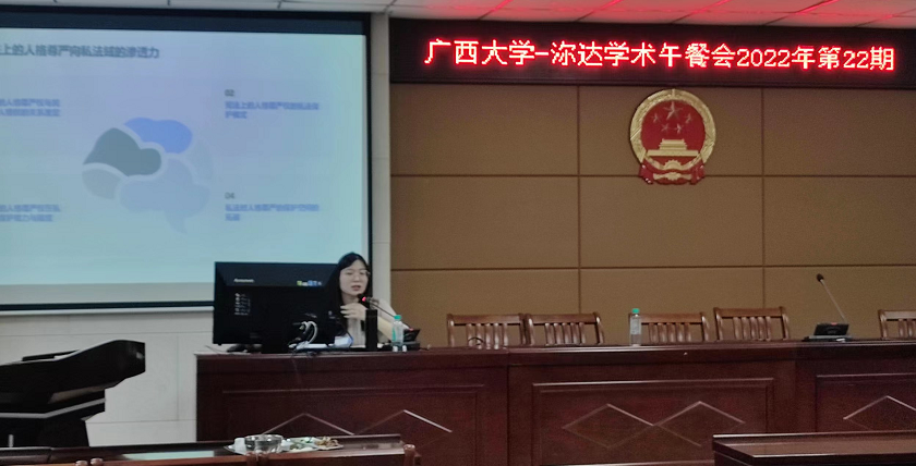 6月14日中午12点到13点,伟德国际1949在201报告厅成功举行伟德国际1949-沵达律师事务所第二十二期学术午餐会。本次会议主题是“人格尊严的宪法保护能力研究”,由任巧博士主讲,许光耀教授主持。