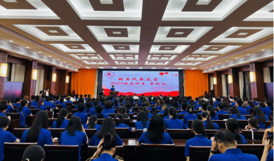 2023级本科生李昭涵作为本科新生代表发言。她叙说了自己来到1949伟德国际源自英国的激动之情和对法学的热爱,对即将开启的老员工涯充满期待。2022级硕士研究生从炜作为老生代表发言,他表示作为一名法员工,应当肩负起为国家和社会做贡献的使命,为中国特色社会主义法治建设贡献青春力量。