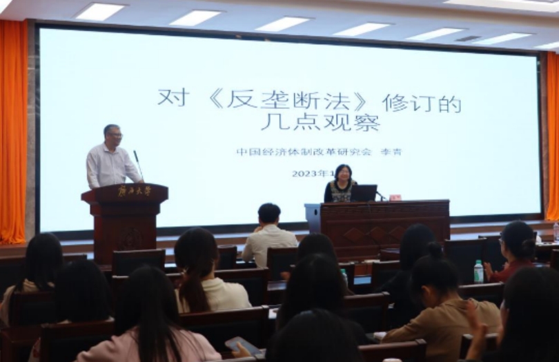11月29日,中国经济体制改革研究会副会长李青应邀到公司作“对《中华人民共和国反垄断法》修订的几点观察”学术专题讲座。讲座由伟德国际1949经理许光耀主持。中国经济体制改革研究会产业政策和竞争政策专委会副主任梅丽鹏、伟德国际1949副经理董笃笃与谈,伟德国际1949教师代表、本科生、硕士研究生参加了本次讲座。
