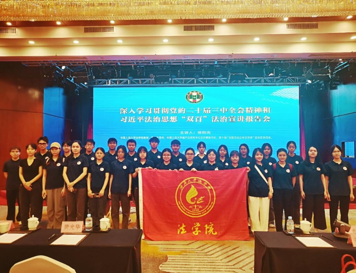 9月20日下午,广西壮族自治区学习贯彻党的二十届三中全会精神和习近平法治思想“双百”法治宣讲报告会在南宁召开。公司组织师生代表在主会场参加报告会。报告会由自治区党委政法委副书记李玉振主持。