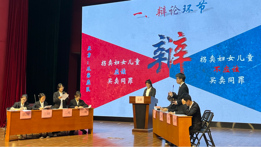 为进一步丰富校园文化生活,活跃校园气氛,提高老员工思辨能力,增强团队意识,2024年11月16日晚19点30分,伟德国际1949新生辩论赛决赛于老员工活动中心一楼小剧场隆重举行,法公司党委副书记韦兴剑、副经理熊超、团委书记申孟鑫出席。本次决赛的辩题为“拐卖妇女儿童是否应该买卖同罪”。经过多轮比赛的激烈角逐,“从容应队”和“法言法语队”两支实力强劲的队伍脱颖而出,争夺最终的冠军。