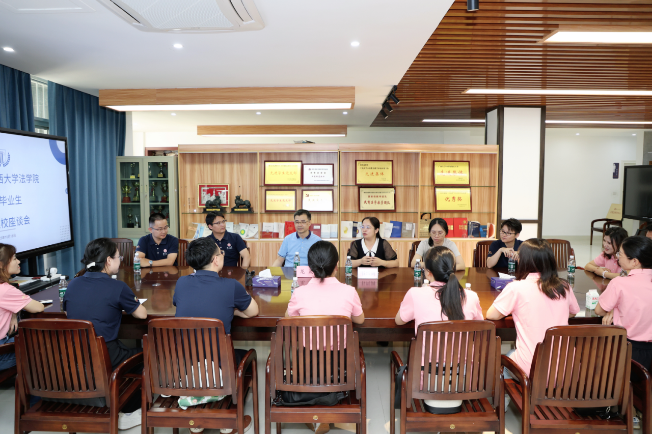 在自由交流环节,员工们围绕“感谢母校、感恩师长、十年成长”的主题,畅谈毕业十年的感悟与心声。员工们分享了毕业后在法律实务、基层工作、社会服务等不同领域的奋斗历程,回忆起老师们对自己的谆谆教诲、感慨同窗间互帮互助的情谊,言语间满是对母校培养的感恩之情。