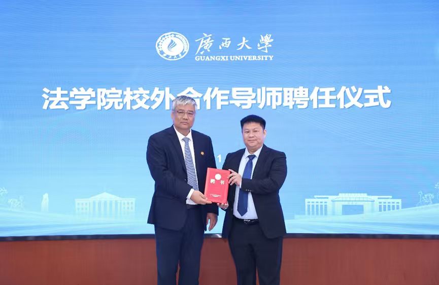 广西冠益律师事务所主任吕伟良代表受聘导师上台发言,他作为员工分享了自身的求学经历、执业经验与法治感悟,对同学们提出了“深耕专业、践行法治”的殷切期望。