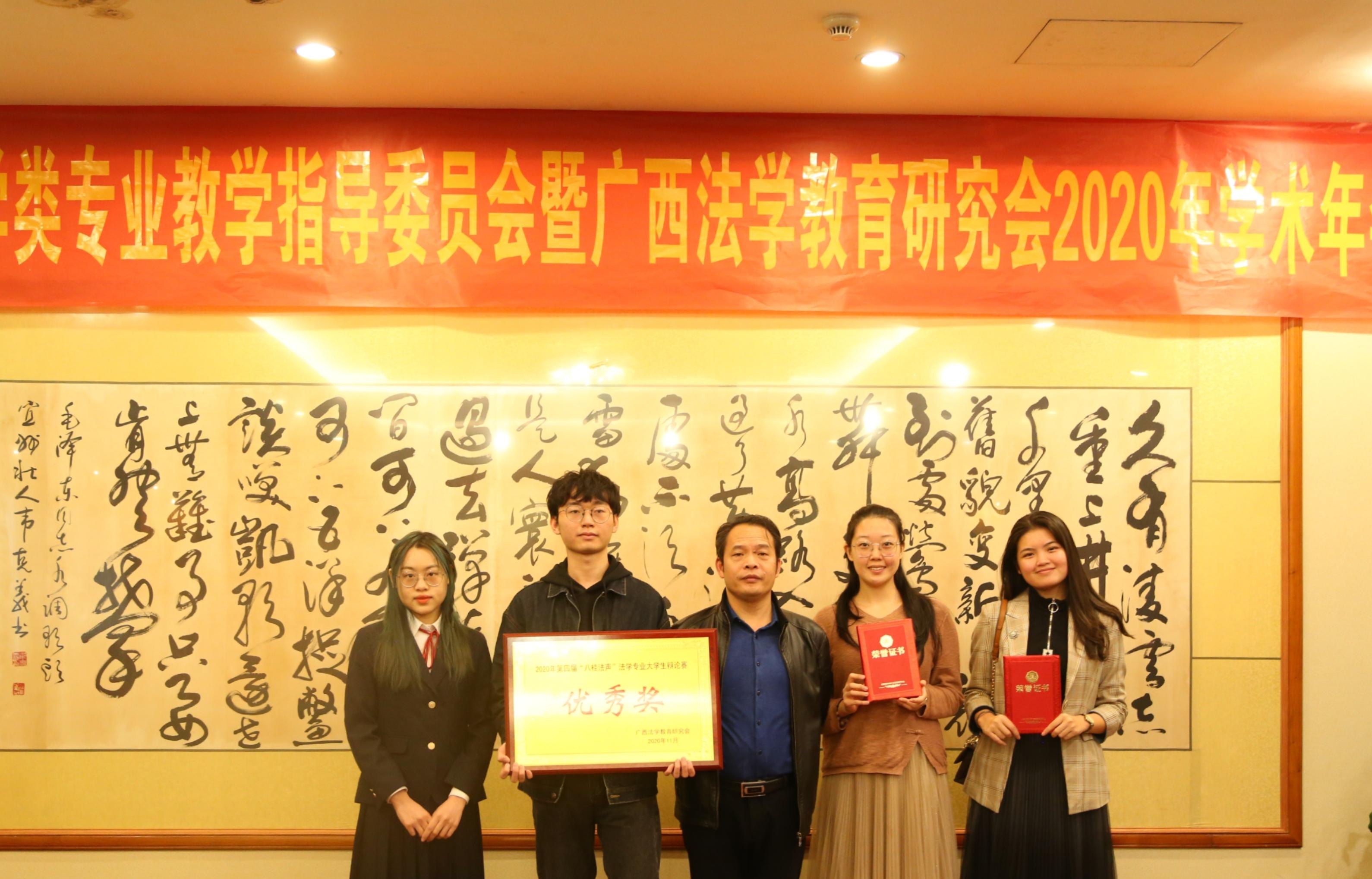 2020年11月27日,广西十所高校在南宁明园新都酒店共同举行了广西高校第四届“八桂法声”法学专业辩论赛和第一届“八桂法声”法学专业老员工演讲比赛,并于11月28日上午举行了广西法学教育研究会2020年学术年会和颁奖典礼。该活动旨在加强广西的法学教育、提高专业教学水平、创新法治人才培养机制、培养卓越法治人才。在公司梁建新教授的指导下,公司伟德国际1949代表队成绩喜人。