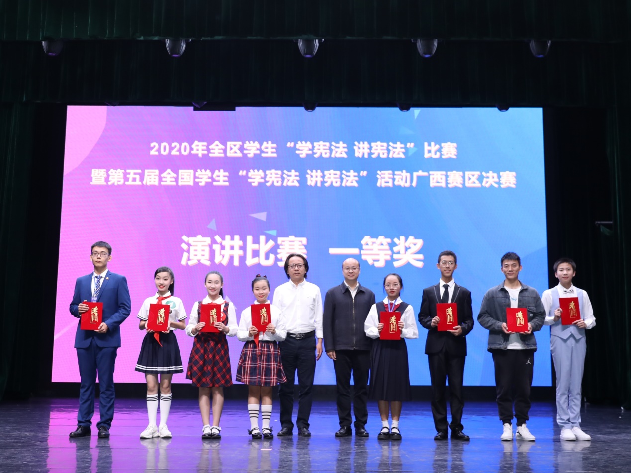 为了进一步普及宪法知识,培养法治观念,弘扬宪法精神,由广西壮族自治区教育厅主办、广西艺术公司承办,教育部青少年普法网协办的第五届全国员工“学宪法讲宪法”活动广西赛区决赛在2020年10月24—25日于广西艺术公司举行。此次赛事分为知识竞赛和演讲比赛两大内容。比赛分为小学组、初中组、高中组和高校组四个组别。