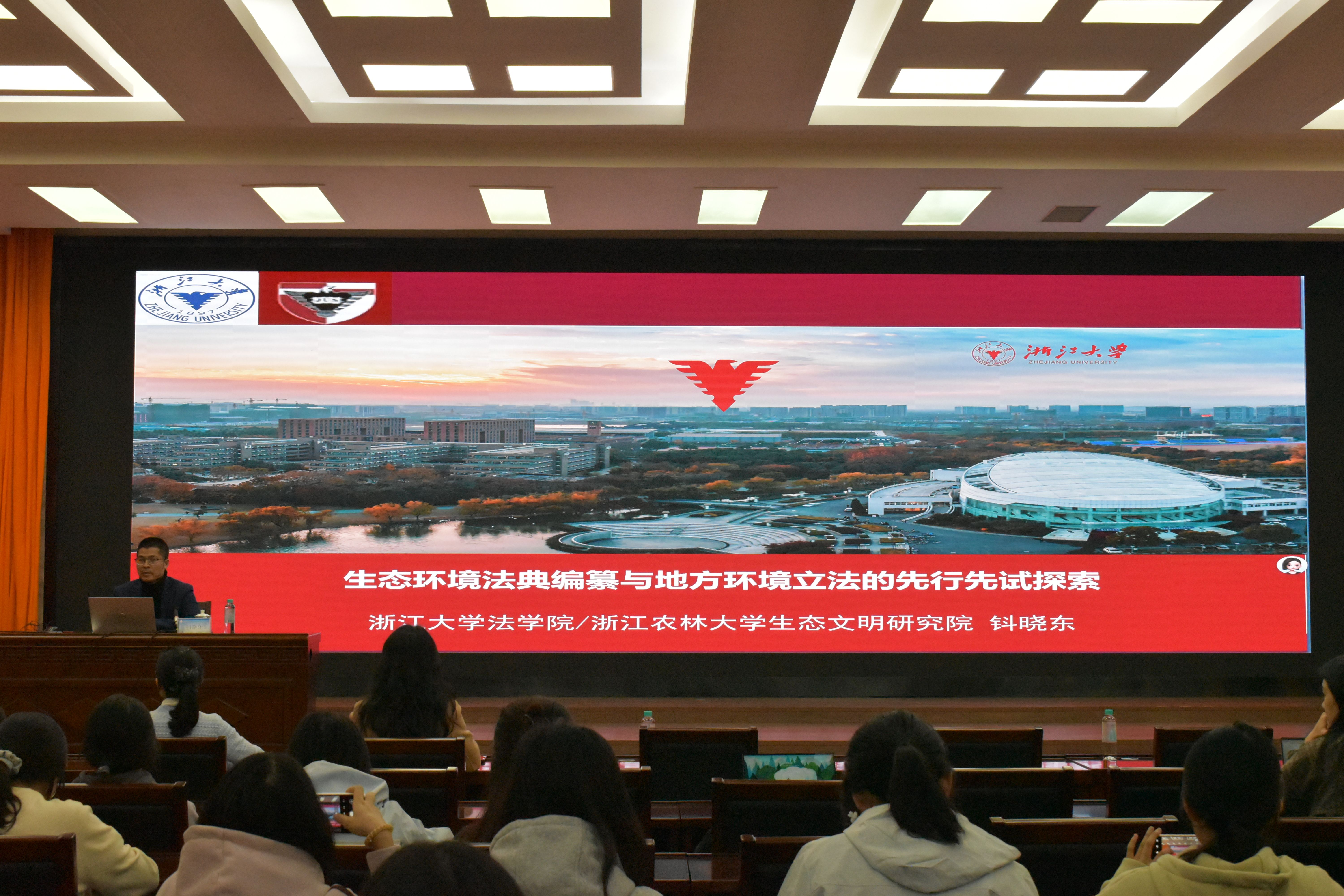 提问环节气氛热烈,参会师生围绕农村垃圾处置规范化、生态环境协调机制立法转化等热点问题与钭晓东教授展开深入探讨,现场互动频频、干货满满,进一步深化了大家对生态环境法治实践的理解。